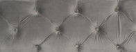 The balance of rusticated accenting and elegant form is exquisitely achieved in the design of the Rachelle Collection. Serving as the focal point of the collection the stately sleigh bed presents an elegant profile for your bedroom, with its gray velvet-covered, rolled, padded headboard and footboard defined by button tufting, nailhead accent and wood framing. The knotty pecan wood veneer that frames the Eastern King bed features a weathered pecan finish further lending to the classic look of the collection.