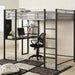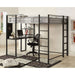 Sherman Silver/Gun Metal Full Bed w/ Workstation, 80 7/8"L X 58 1/2"W X 72"H, 170.5lbs. This bunk bed is a great space saver for smaller rooms. Features include built-in student desk and shelving, attached ladder and is available in twin or full size. Features: Full Metal Construction Workstation w/ Shelves Metal Upper Safety Rails Silver & Gun Metal Finish