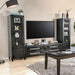 Diverge from traditional wood construction and humor your industrial side with this sleek entertainment set. The full metal frame offers unique functionality with mesh paneled doors that cleverly hide items in a hazy tight-knit grid. Display entertainment devices on lower shelves and easily store items with plenty of shelves for movies, games and controllers. With pointed tapered legs, the entertainment set provides the perfect view for endless binge watching and extended game play.